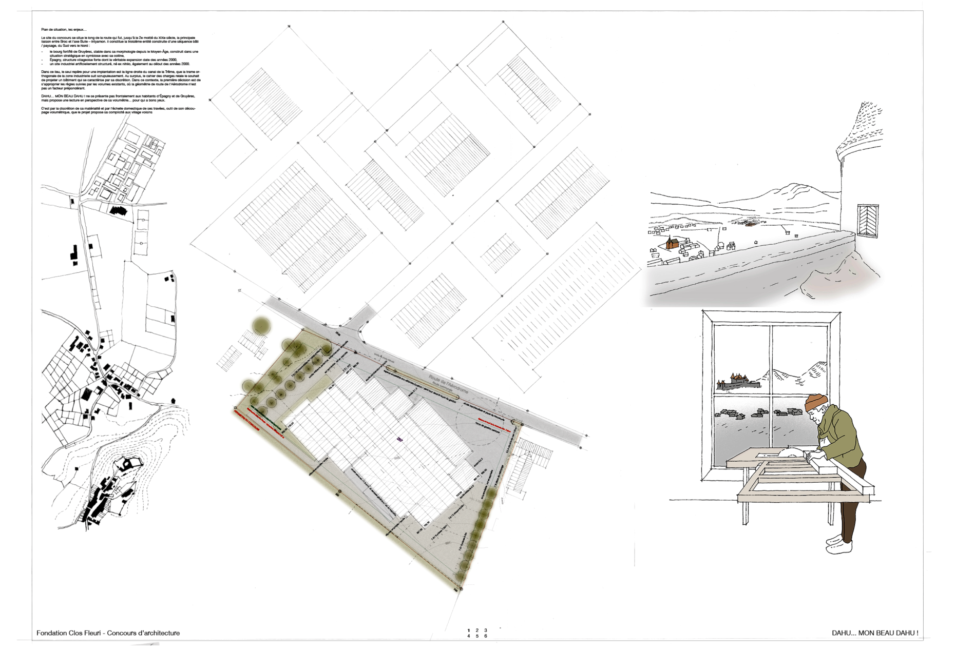Par la discrétion de sa matérialité et par l’échelle domestique de ses travées, outil de son découpage volumétrique, il se rend complice de l’échelle des village voisins.